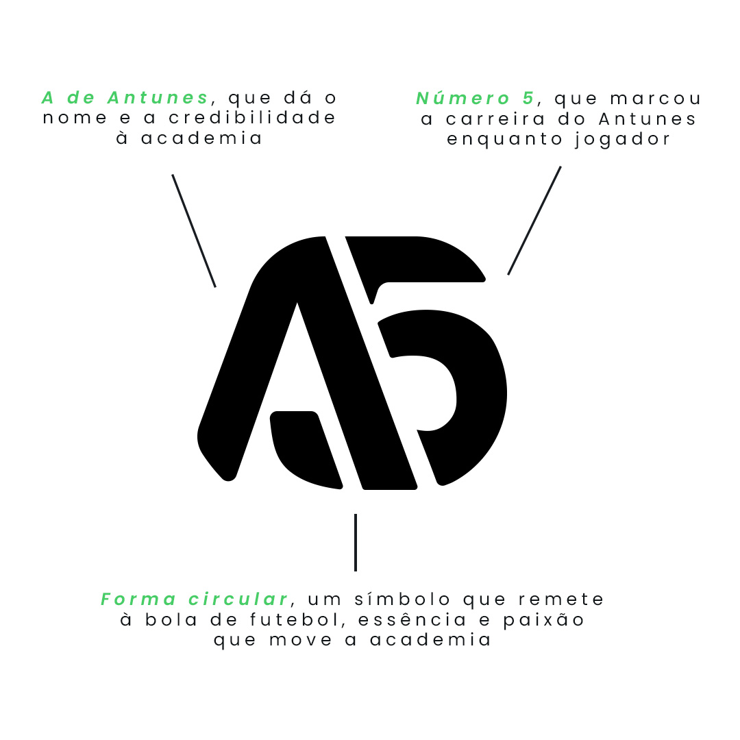 O logótipo da Academia Antunes foi desenvolvido para transmitir identidade, história e paixão pelo futebol. Cada detalhe tem um propósito: